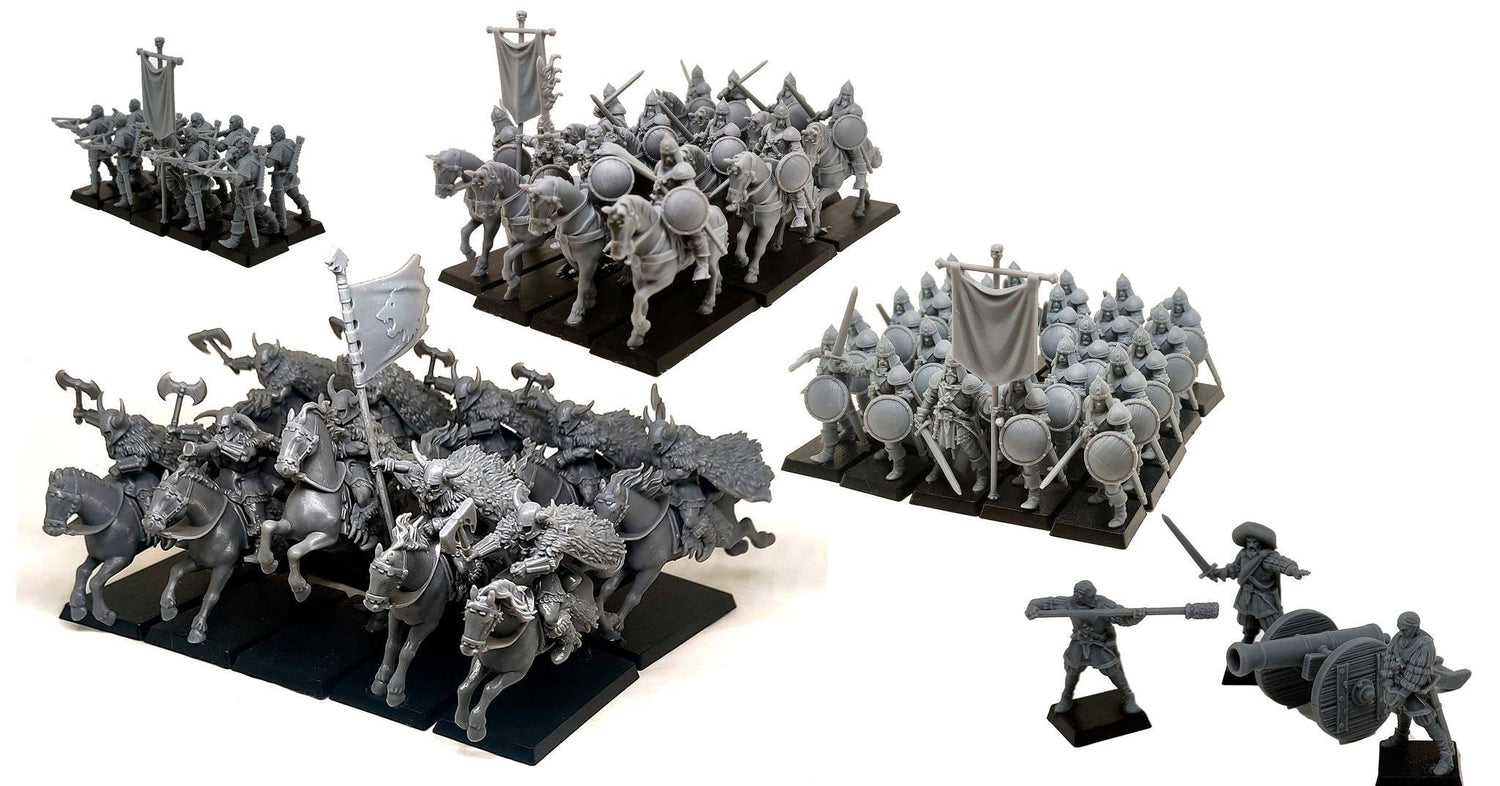 Old school aesthetics meet modern methods with these fantastic miniatures for your favorite rank & flank games. Sculpted by the amazing Israel Delgado Laborda of Miniaturas Ezipion and Castilla Oscura.